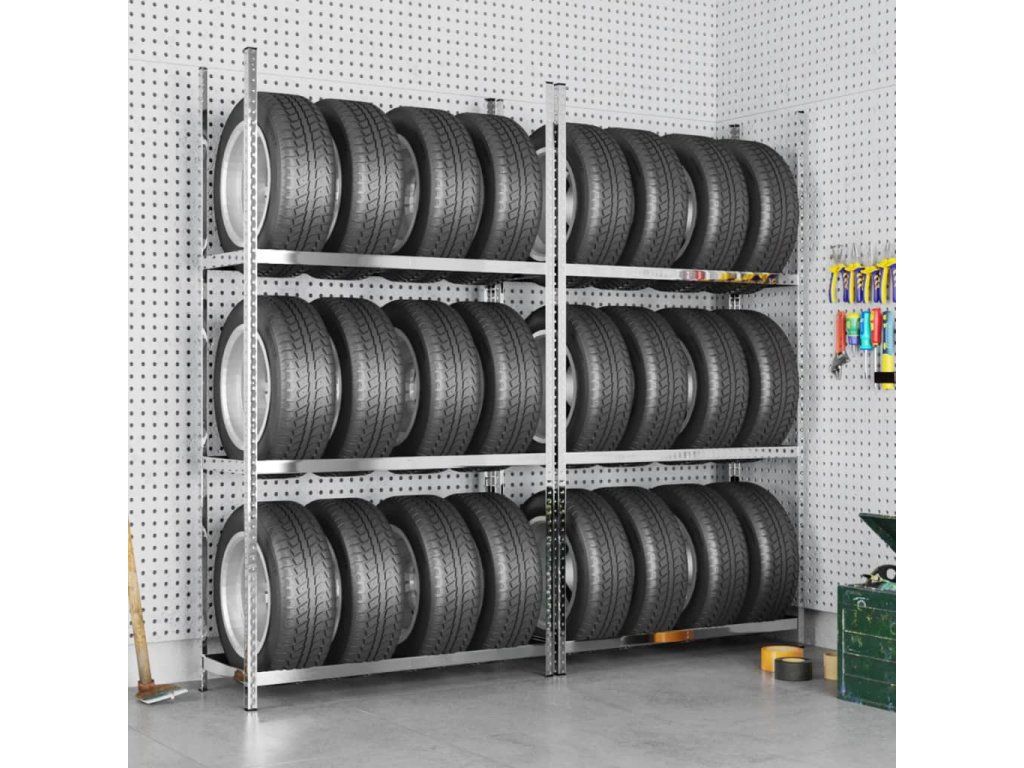- Pevný rám: Regál na pneumatiky tvoří ocelový rám. Ocelové rámy zaručují pevnost a stabilitu.