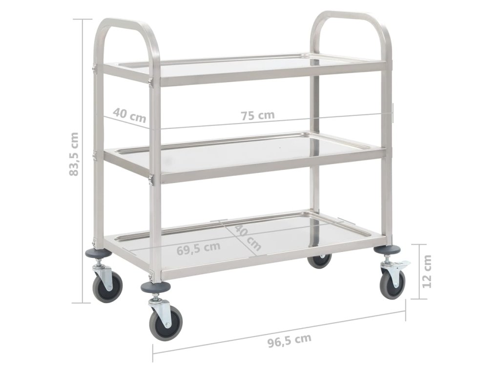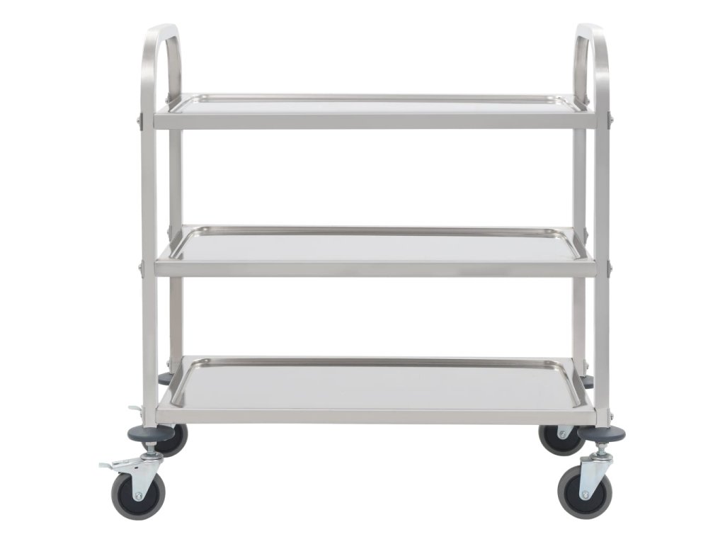 Tento 3patrový kuchyňský vozík má robustní konstrukci, takže vám přijde vhod jak v kuchyni, tak na večírcích. Usnadní vám servírování pokrmů a nápojů i odvážení použitého nádobí do kuchyně.