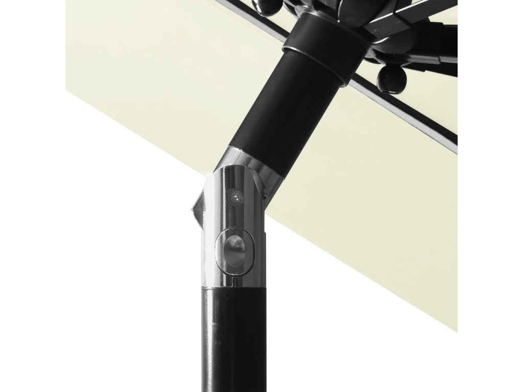 Zahradní slunečník je vyrobený z polyesteru, který nebledne a skvěle odolává UV záření, poskytne vám tedy optimální ochranu proti slunci. Stabilitu zajišťují práškově lakovaná hliníková tyč a žebra. Slunečník je vybavený klikovým mechanismem a funkcí naklápění, je skládací a přenosný. Můžete ho zasadit do svého stávajícího stojanu nebo doprostřed stolů s otvorem na slunečník.