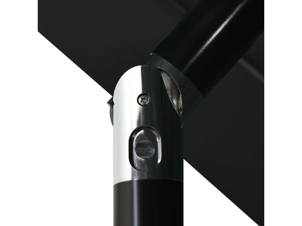Zahradní slunečník je vyrobený z polyesteru, který nebledne a skvěle odolává UV záření, poskytne vám tedy optimální ochranu proti slunci. Stabilitu zajišťují práškově lakovaná hliníková tyč a žebra. Slunečník je vybavený klikovým mechanismem a funkcí naklápění, je skládací a přenosný. Můžete ho zasadit do svého stávajícího stojanu nebo doprostřed stolů s otvorem na slunečník.