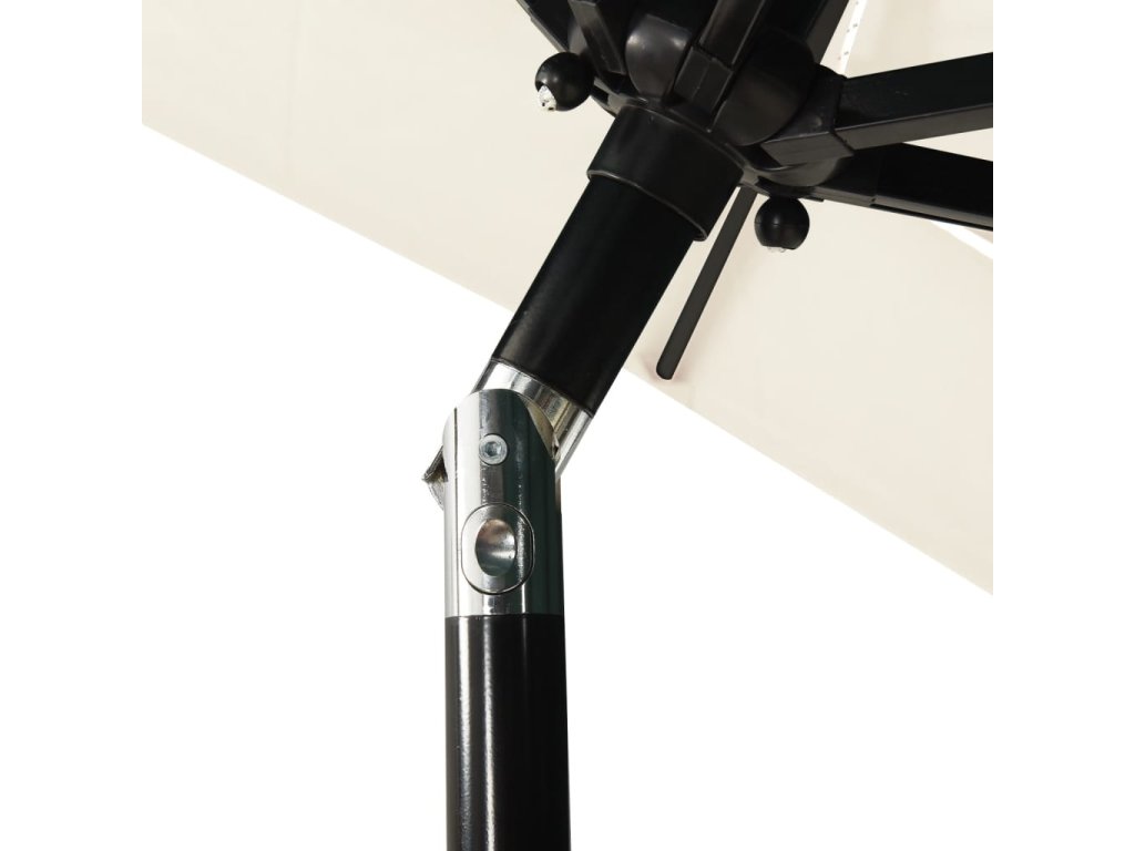 Zahradní slunečník je vyrobený z polyesteru, který nebledne a skvěle odolává UV záření, poskytne vám tedy optimální ochranu proti slunci. Stabilitu zajišťují práškově lakovaná hliníková tyč a žebra. Slunečník je vybavený klikovým mechanismem a funkcí naklápění, je skládací a přenosný. Můžete ho zasadit do svého stávajícího stojanu nebo doprostřed stolů s otvorem na slunečník.