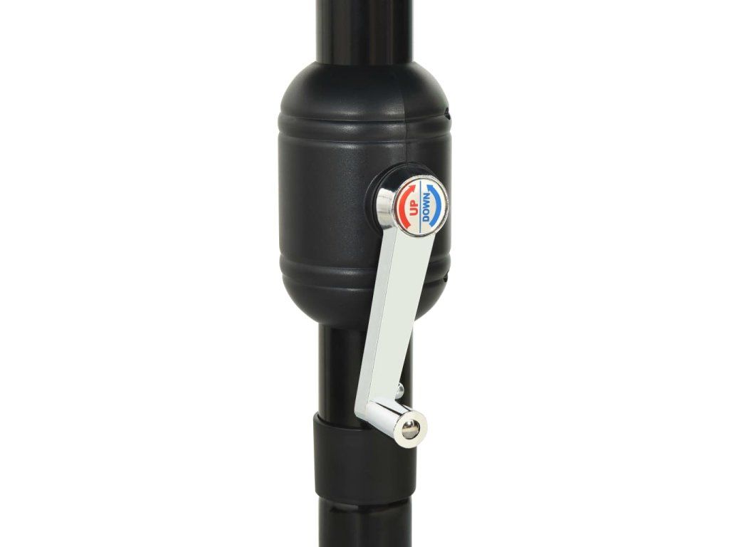 Zahradní slunečník je vyrobený z polyesteru, který nebledne a skvěle odolává UV záření, poskytne vám tedy optimální ochranu proti slunci. Stabilitu zajišťují práškově lakovaná hliníková tyč a žebra. Slunečník je vybavený klikovým mechanismem a funkcí naklápění, je skládací a přenosný. Můžete ho zasadit do svého stávajícího stojanu nebo doprostřed stolů s otvorem na slunečník.