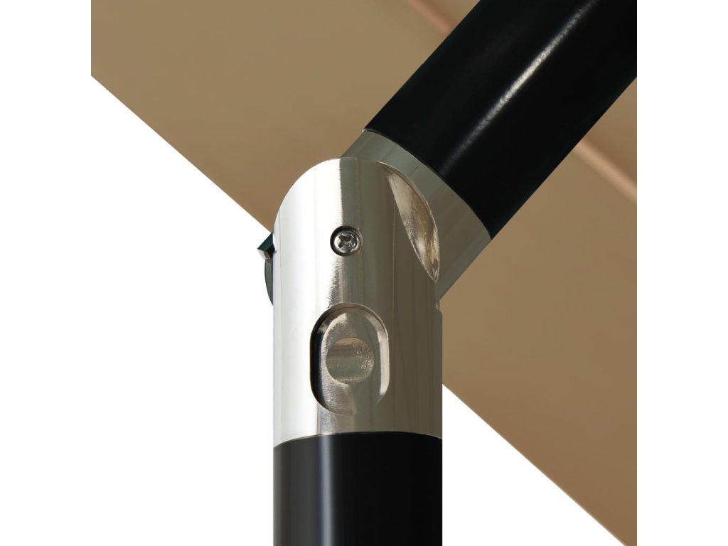Zahradní slunečník je vyrobený z polyesteru, který nebledne a skvěle odolává UV záření, poskytne vám tedy optimální ochranu proti slunci. Stabilitu zajišťují práškově lakovaná hliníková tyč a žebra. Slunečník je vybavený klikovým mechanismem a funkcí naklápění, je skládací a přenosný. Můžete ho zasadit do svého stávajícího stojanu nebo doprostřed stolů s otvorem na slunečník.
