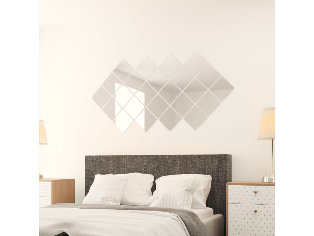 Tato sada zrcadlových dlaždic nemá rámy, můžete si ji proto sestavit do vzoru dle vlastního uvážení. Přidáním zrcadel pokoj nejen zkrášlíte, ale také jej prosvětlíte a vytvoříte dojem většího prostoru.