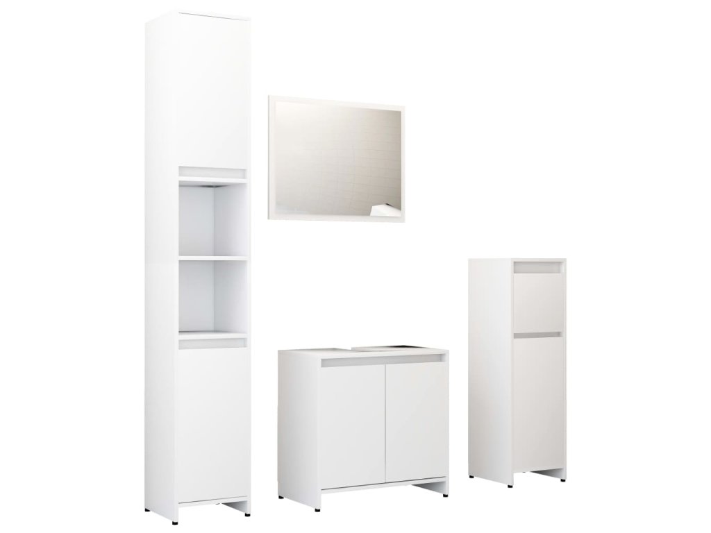 Tato stylová sada nábytku do koupelny sestává z 1 vysoké skříně, 1 střední skříňky, 1 skříňky pod umyvadlo a 1 zrcadla. Pomůže vám ve vaší koupelně vytvořit mnohem více úložného prostoru a zároveň jí dodá nádherně uspořádaný vzhled.