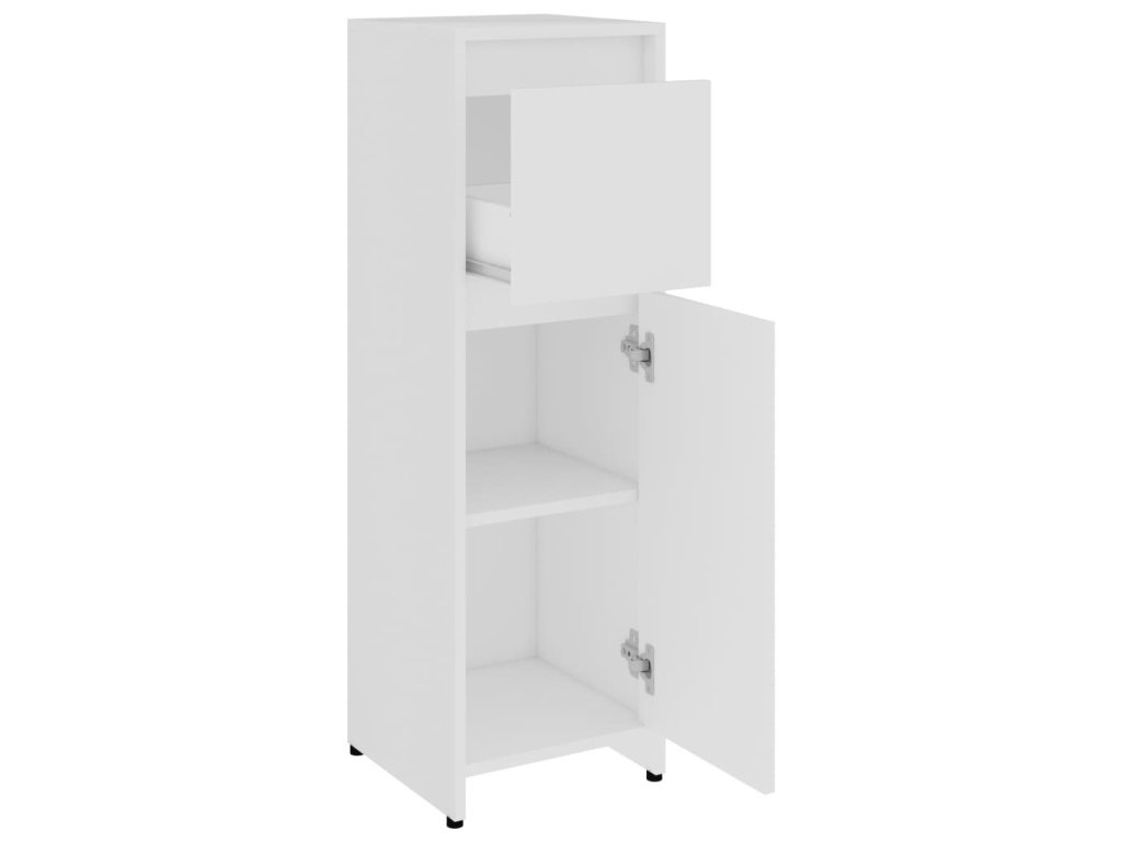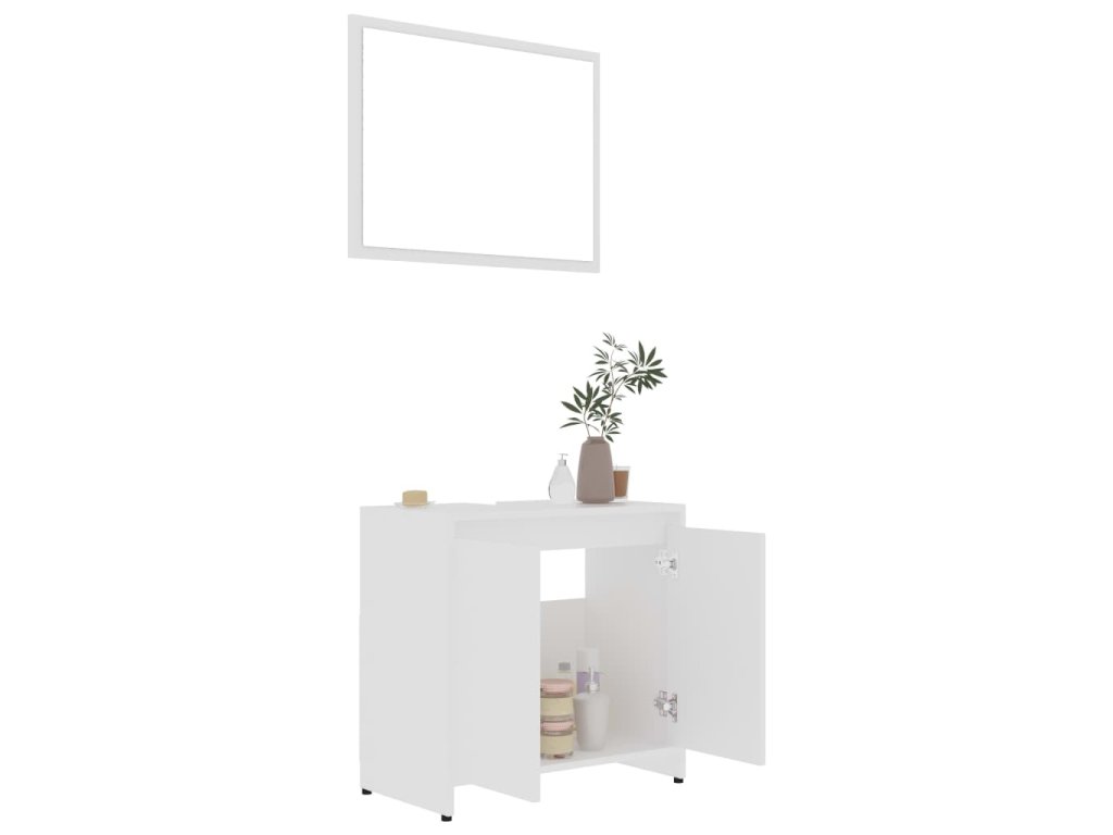 Set je vyrobený z prémiového kompozitního dřeva, což mu zajišťuje dobrou stabilitu a odolnost. Stylová vysoká skříň má 6 přihrádek a 2 dvířka, zatímco střední skříňku tvoří 2 přihrádky, 1 zásuvka a 1 přihrádky s dvířky. Obě skříňky nabízí spoustu místa, kam si můžete uložit základní potřeby do koupelny. Skříňka pod umyvadlo obsahuje 1 přihrádku za 2 dvířky, skrývá tedy další prostor pro vaše hygienické potřeby, kosmetické přípravky a různé menší věci. Můžete si sem dát například hřebeny, kosmetiku, kartáčky na zuby a zubní pastu atd. Budete v nich tak mít pořádek a vždycky budou po ruce. Zrcadlo promění jedinečným způsobem celkový vzhled vašeho stávajícího zařízení. Celý set navíc snadno očistíte navlhčeným hadříkem.