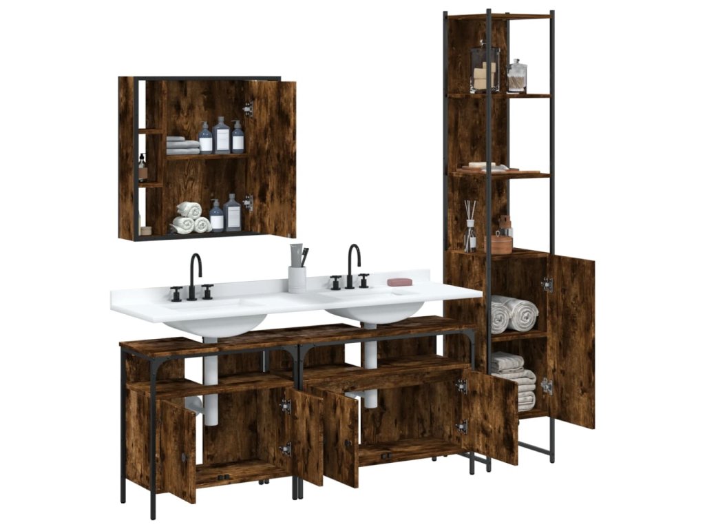 Tato atraktivní sada koupelnových skříněk s velkým úložným prostorem se vyznačuje stylovým i praktickým designem.