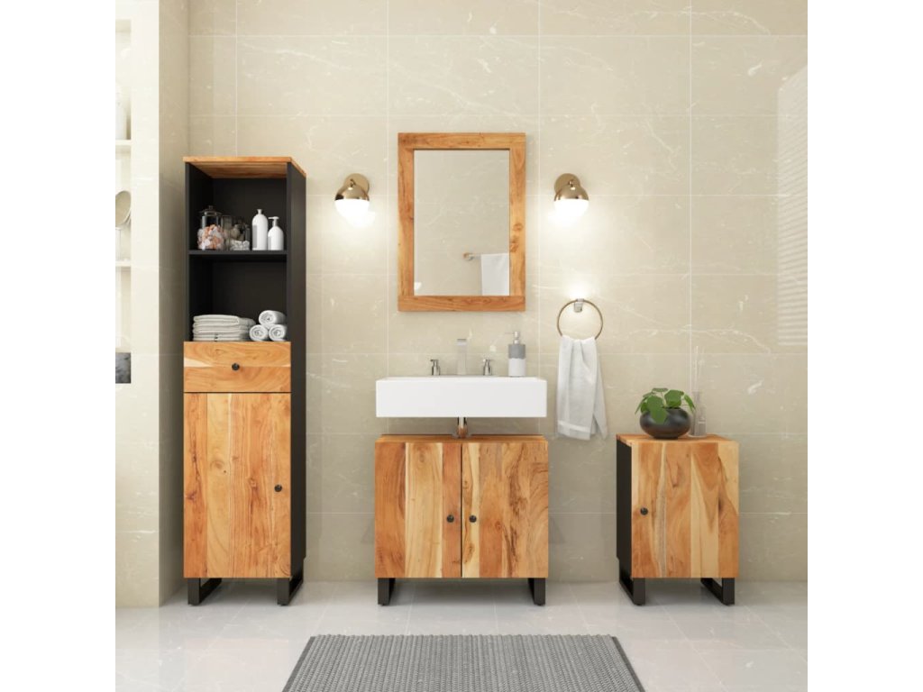 - Masivní akáciové dřevo: Tato skříňka je vyrobena z masivního akáciového dřeva v kombinaci s kompozitním dřevem. Masivní akáciové dřevo je nádherný přírodní materiál. Akáciové dřevo je tropické tvrdé dřevo, které má hustou strukturu a je pevné a odolné.
