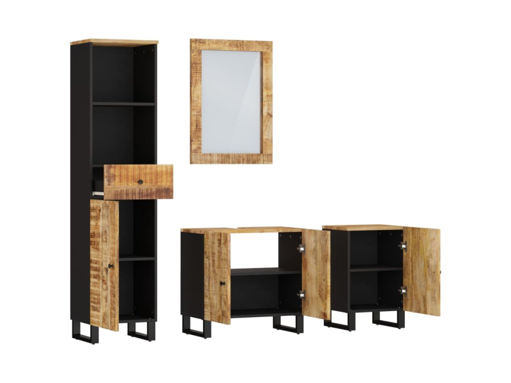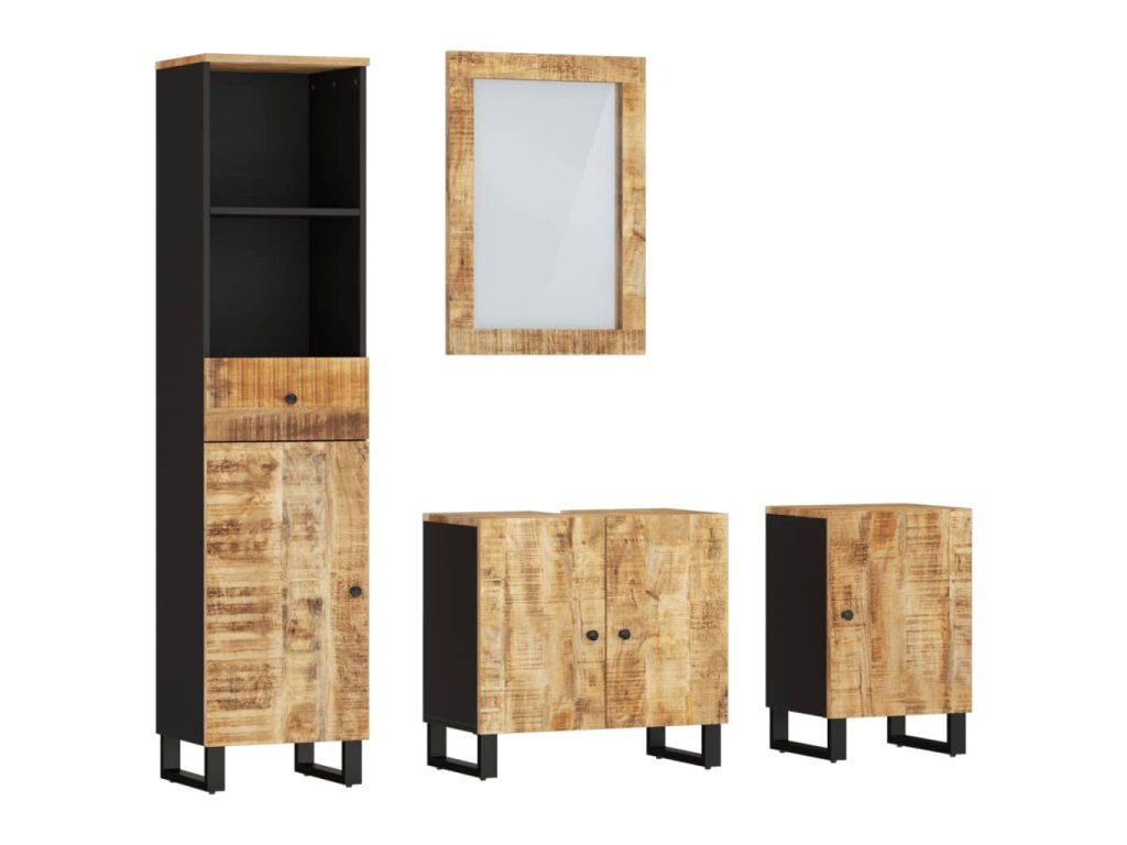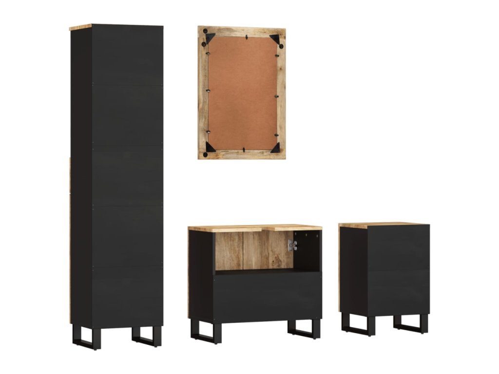 - Masivní mangovníkové dřevo: Skříňka je vyrobena z masivního mangovníku v kombinaci s kompozitním dřevem. Masivní mangovníkové dřevo je pevné tropické tvrdé dřevo, ze kterého se vyrábí robustní nábytek. Krásná kresba dřeva propůjčuje každému kusu nábytku jeho jedinečný a od všech ostatních lehce odlišný vzhled.
