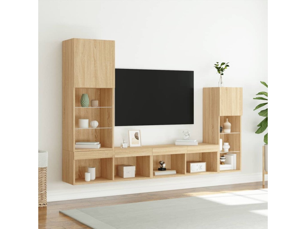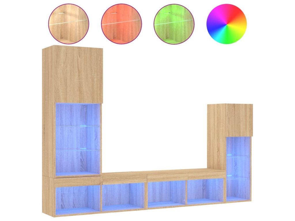 - RGB LED světla: TV jednotka je vybavena živými RGB LED světly. Různé přizpůsobitelné nabídky vám umožní snadno změnit barvu světel nebo dokonce i nastavit světla tak, aby se přizpůsobila automaticky. Tato LED světla nejen podtrhují moderní vzhled plovoucí TV skříňky, ale také jí dodávají na módním půvabu.