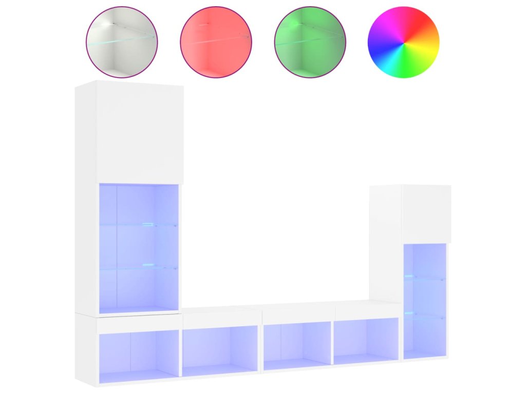 - RGB LED světla: TV jednotka je vybavena živými RGB LED světly. Různé přizpůsobitelné nabídky vám umožní snadno změnit barvu světel nebo dokonce i nastavit světla tak, aby se přizpůsobila automaticky. Tato LED světla nejen podtrhují moderní vzhled plovoucí TV skříňky, ale také jí dodávají na módním půvabu.
