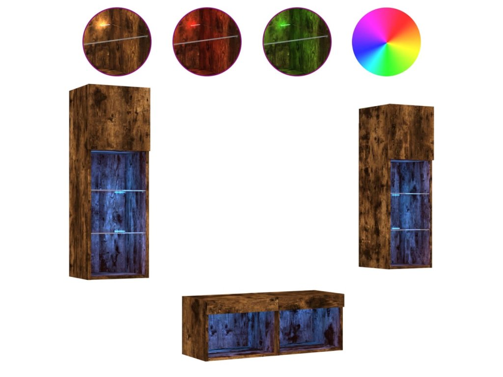 - RGB LED světla: Nástěnné mediální skříňky jsou vybaveny živými RGB LED světly. Různé přizpůsobitelné nabídky vám umožní snadno změnit barvu světel nebo dokonce i nastavit světla tak, aby se přizpůsobila automaticky.