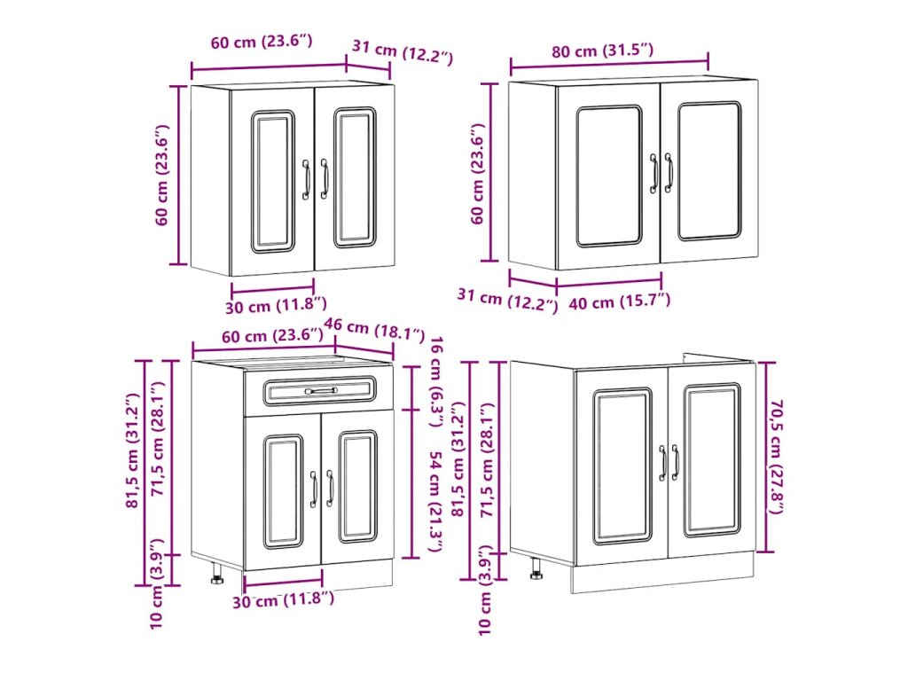 - 1 x Kuchyňská nástěnná skříňka s prosklenými dvířky: 80 x 31 x 60 cm (Š x H x V)