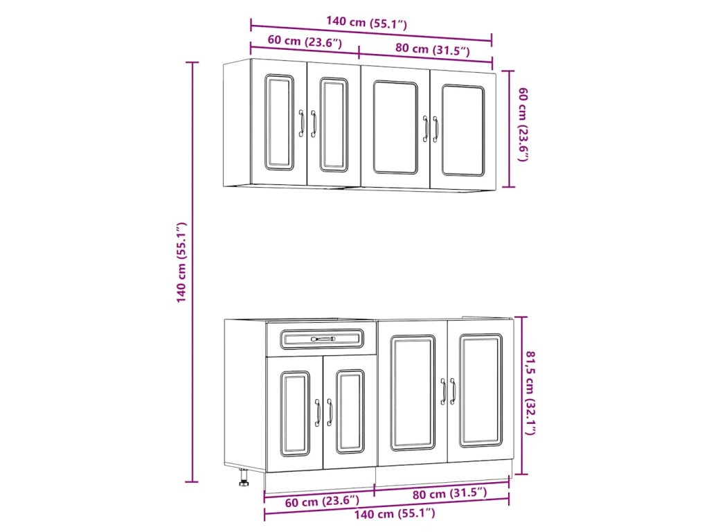 - Dostatek úložného prostoru: Sada kuchyňských skříněk má mnoho přihrádek a nabízí dostatek prostoru pro uložení misek, talířů, hrnců a dalších kuchyňských spotřebičů.