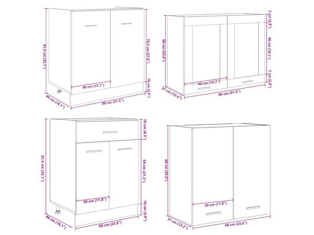 - Rozměry spodní skříňky: 80 x 46 x 81,5 cm (Š x H x V)