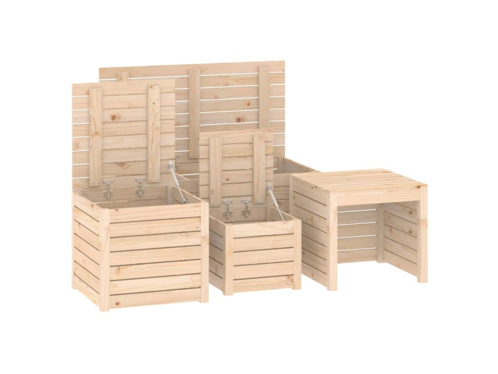 Tato sada dřevěných zahradních boxů poskytuje dostatek prostoru pro uložení nářadí a dalších pomůcek.