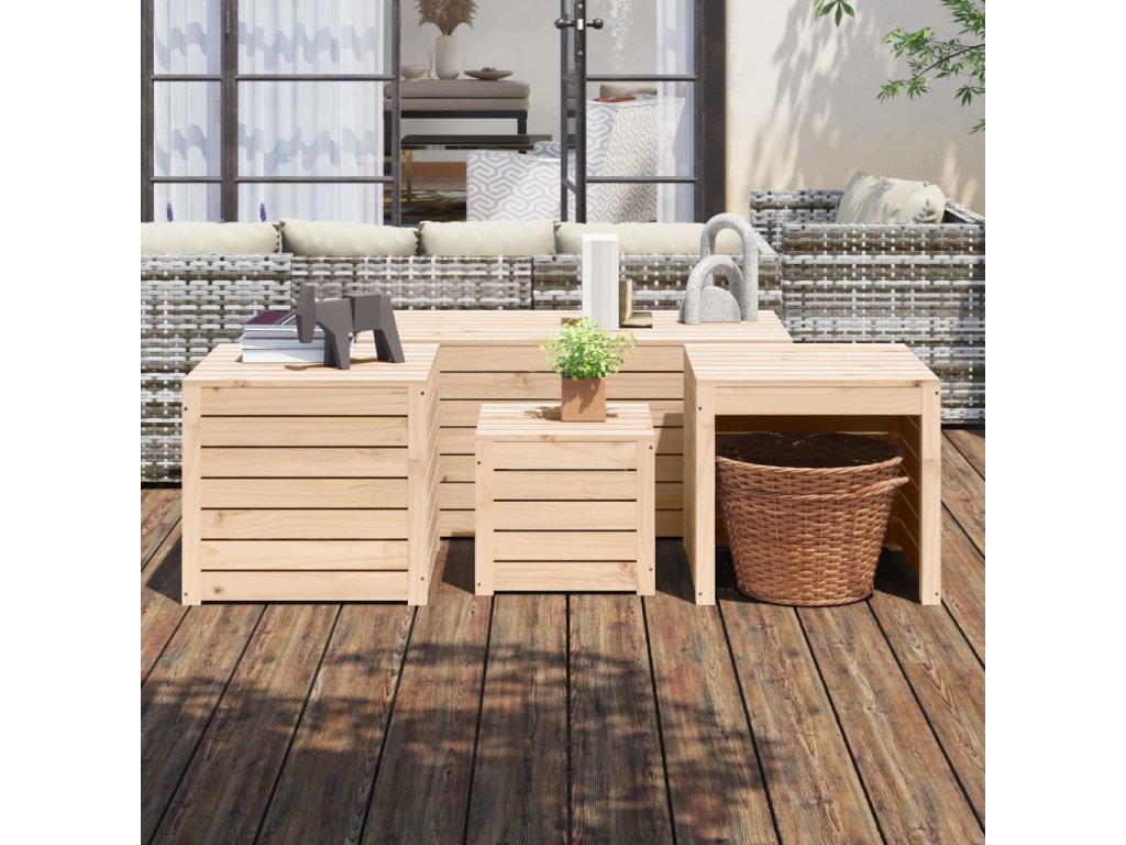 - Masivní borové dřevo: Masivní borové dřevo je krásný přírodní materiál. Borové dřevo má rovnou kresbu a obsahuje suky, které materiálu dodávají jeho charakteristický, rustikální vzhled. Nábytek na terasu je vyroben z masivního borového dřeva, takže je pevný a stabilní.