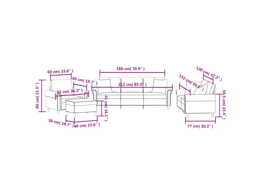 - Celkové rozměry: 212 x 77 x 80 cm (Š x H x V)