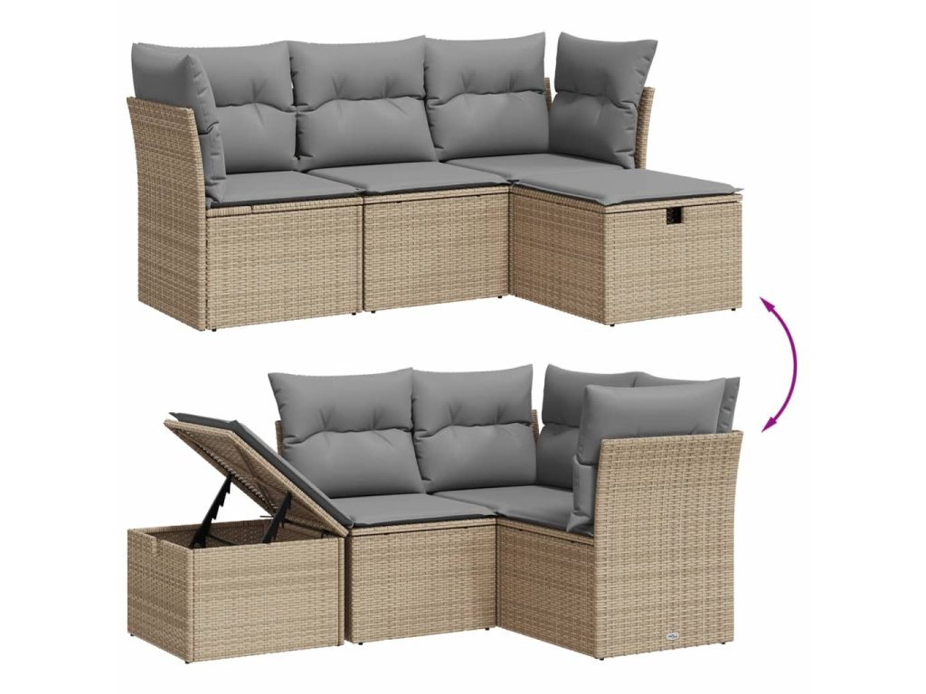 - Pohodlné sezení: Tento venkovní nábytek se silně polstrovanými poduškami a polštáři nabízí pohodlné sezení.