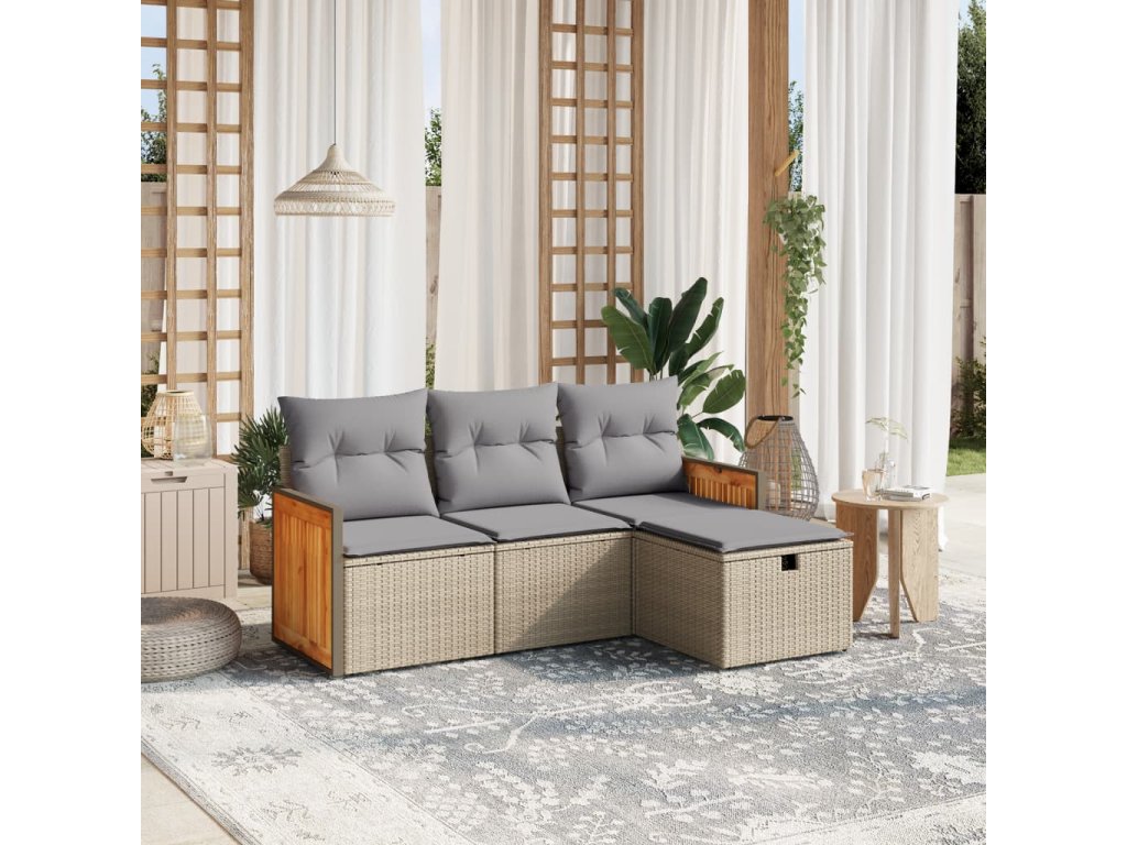 - Pohodlné sezení: Tento venkovní nábytek se silně polstrovanými poduškami a polštáři nabízí pohodlné sezení.