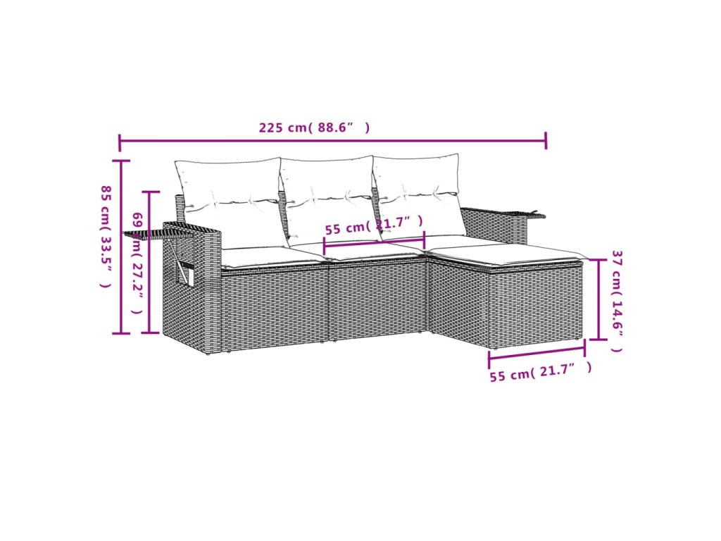 Tato zahradní sedací souprava je dokonalým doplňkem vaší zahrady, terasy nebo dvorku a poskytne vám pohodlné a příjemné místo, kde si můžete povídat s rodinou a přáteli nebo jen tak odpočívat a užívat si pobyt venku.
