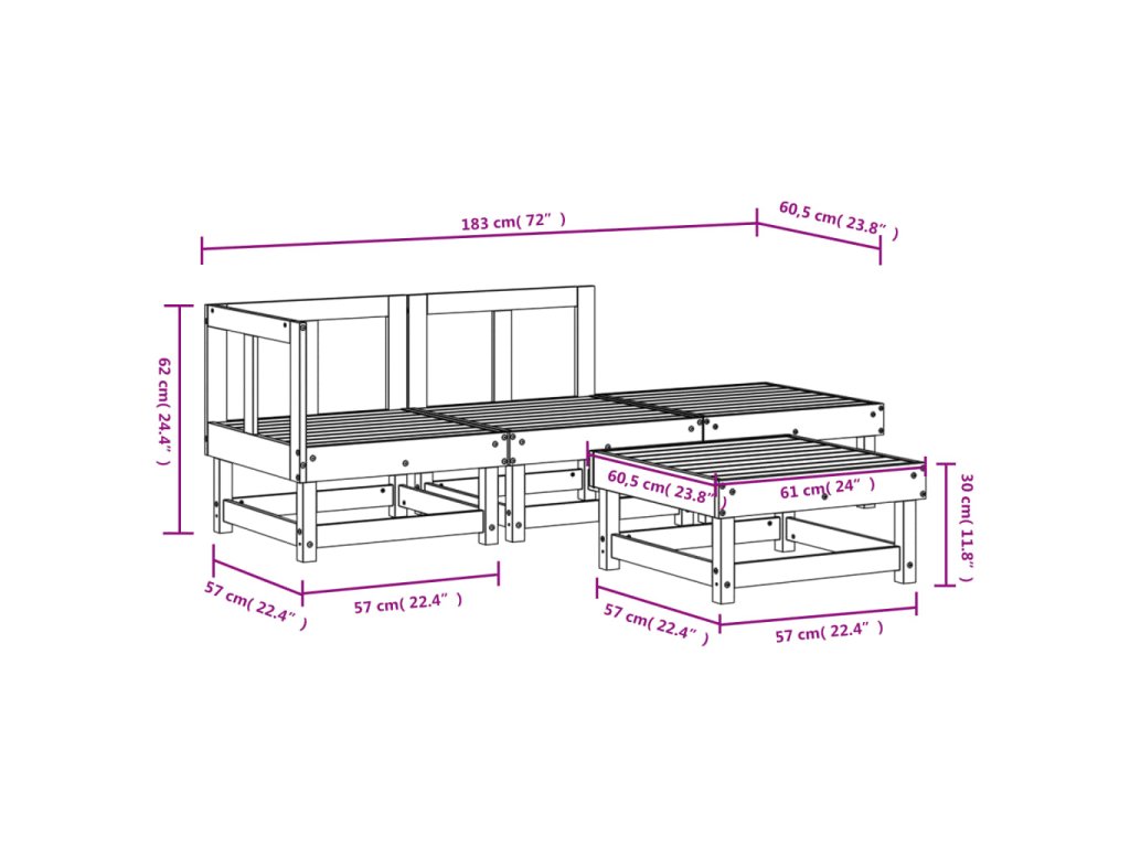 - Rozměry středové pohovky: 61 x 60,5 x 62 cm (Š x H x V)