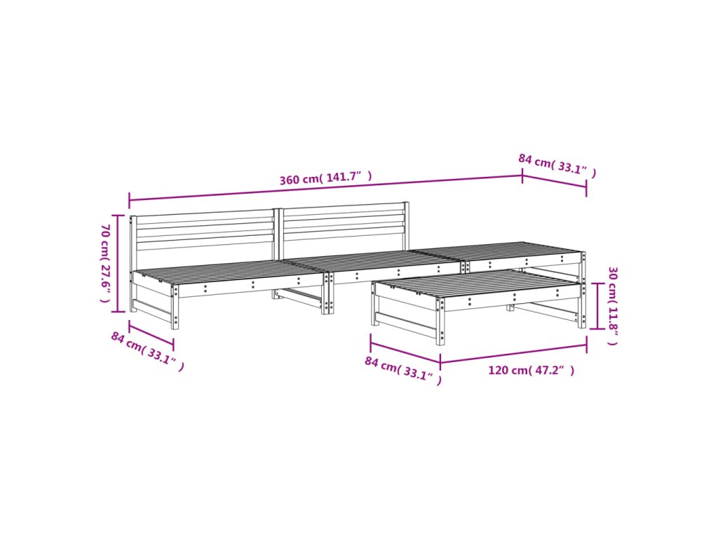 - Rozměry konferenčního stolku / zahradní podnožky: 120 x 84 x 30 cm (D x Š x V)