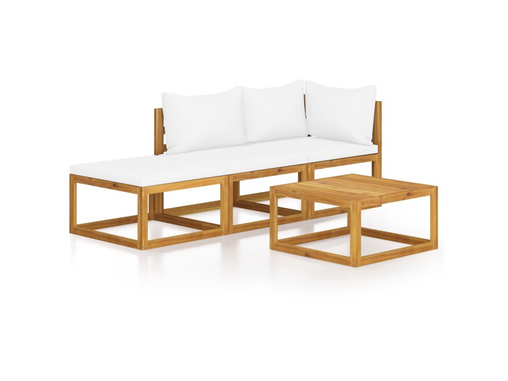 Rám z masivního akáciového dřeva je pevný, odolný a má dlouhou životnost. Dřevo je napuštěné olejem, sedací souprava je proto vhodná i pro venkovní použití. Odnímatelné podušky na sedáky a opěradla jsou silně polstrované, takže se vám na nich bude nesmírně dobře sedět. Součástí balení je také konferenční stolek v unikátním laťkovém provedení. Nevšední modulární design vám umožní všechny díly přestavovat a upravovat dle momentálních potřeb.