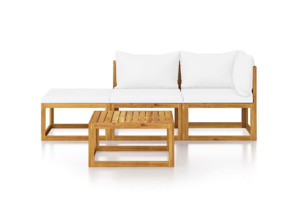 Rám z masivního akáciového dřeva je pevný, odolný a má dlouhou životnost. Dřevo je napuštěné olejem, sedací souprava je proto vhodná i pro venkovní použití. Odnímatelné podušky na sedáky a opěradla jsou silně polstrované, takže se vám na nich bude nesmírně dobře sedět. Součástí balení je také konferenční stolek v unikátním laťkovém provedení. Nevšední modulární design vám umožní všechny díly přestavovat a upravovat dle momentálních potřeb.