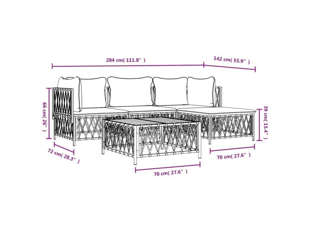 - Robustní rám: Jelikož má práškově lakovaný ocelový rám, je tato sedací souprava robustní a stabilní pro každodenní venkovní použití.