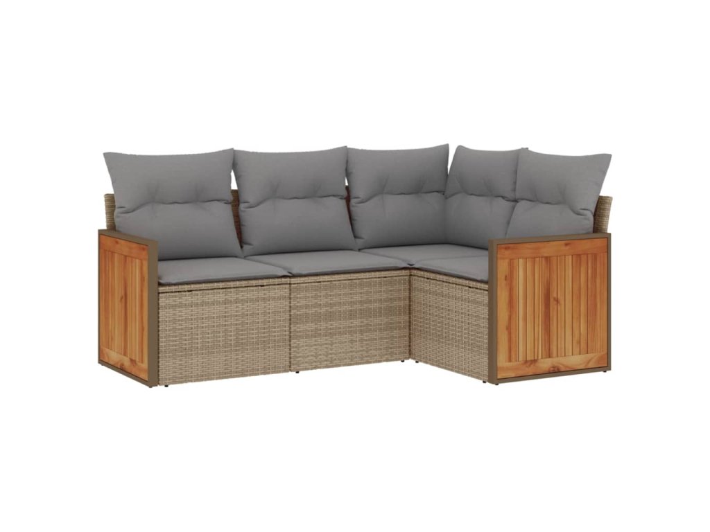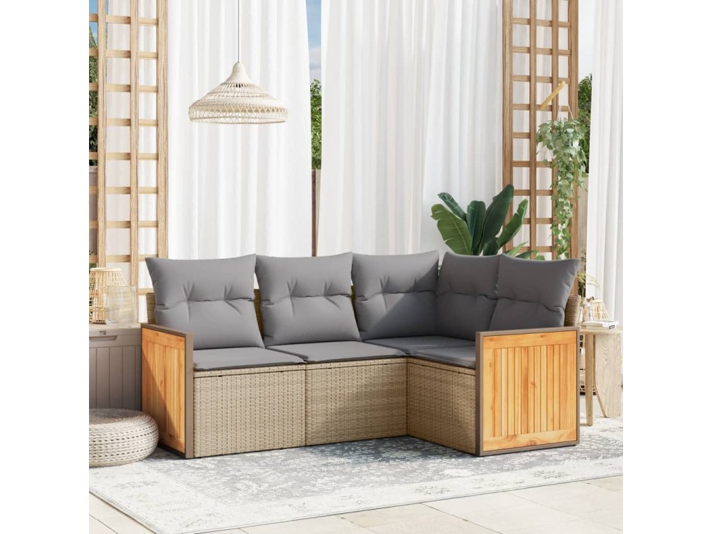 - Materiál: PE ratan, práškově lakovaná ocel, masivní akáciové dřevo s olejovou povrchovou úpravou