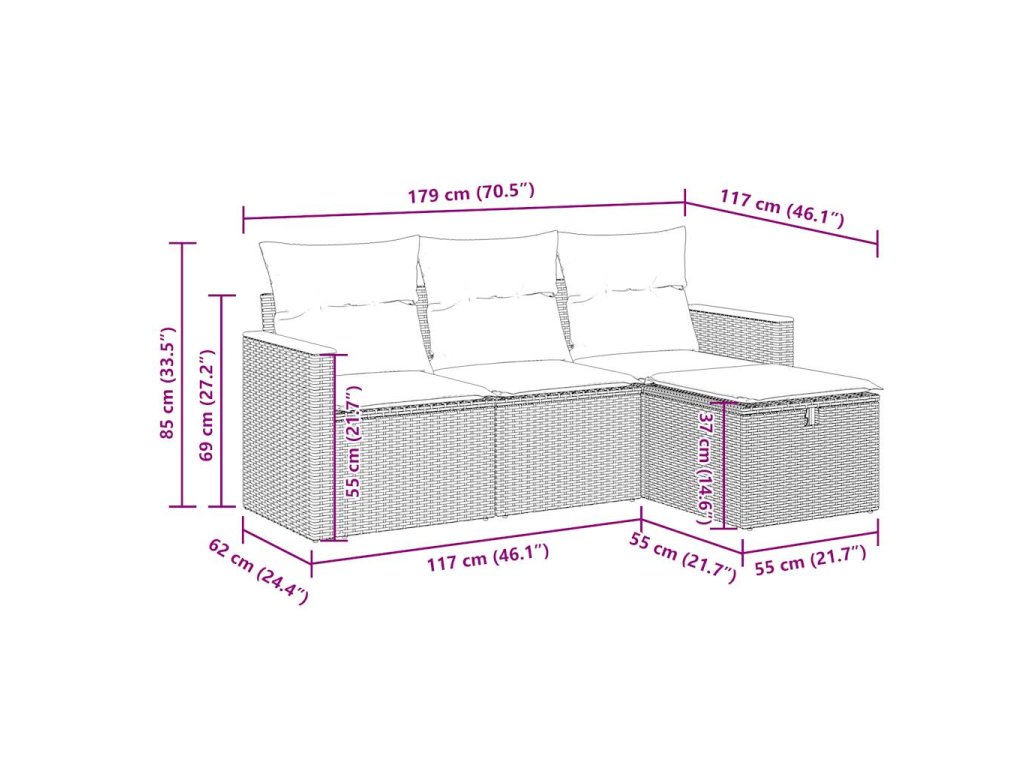 Tato zahradní sedací souprava je dokonalým doplňkem vaší zahrady, terasy nebo dvorku a poskytne vám pohodlné a příjemné místo, kde si můžete povídat s rodinou a přáteli nebo jen tak odpočívat a užívat si pobyt venku.