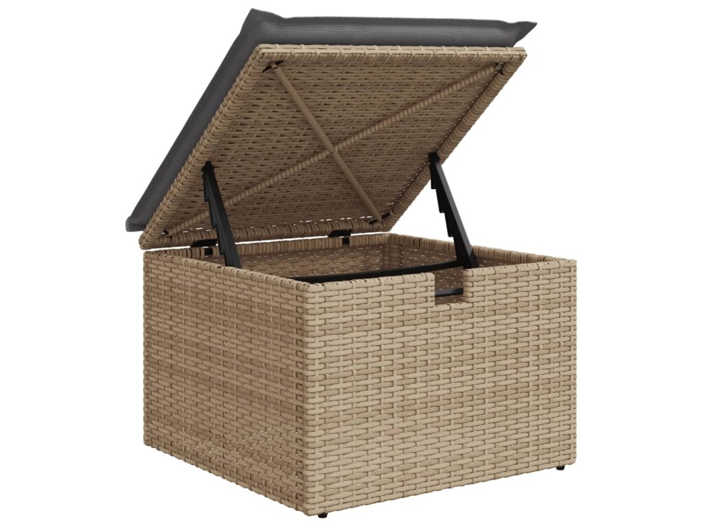 - Úložný prostor s voděodolným vakem: Zahradní nábytek má úložný prostor pod sedákem, který je opatřen voděodolnou vložkou a poslouží vám k ukládání podušek, hraček a dalších věcí. Vnitřní vak lze bezpečně připevnit k venkovnímu nábytku pomocí suchého zipu, což zaručí větší stabilitu.