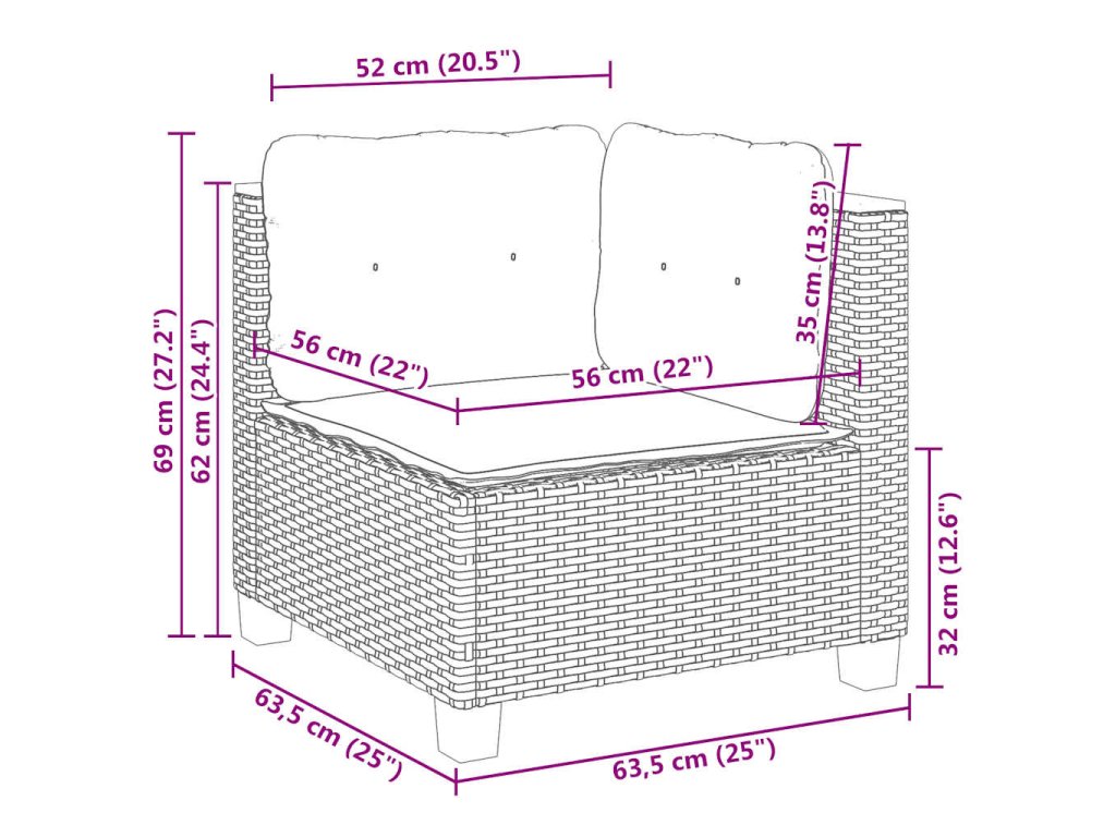 - Rozměry podušky na sedák (rohový díl): 56,5 x 56,5 x 3 cm (Š x H x T)