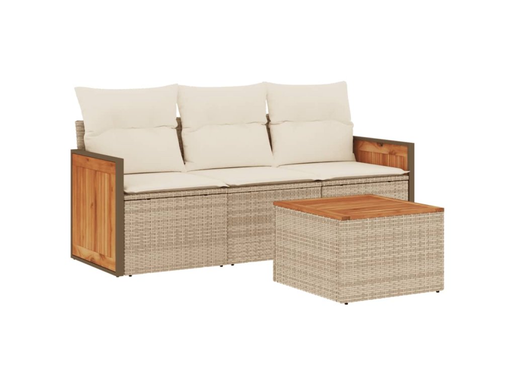 - Materiál: PE ratan, práškově lakovaná ocel, masivní akáciové dřevo s olejovou povrchovou úpravou