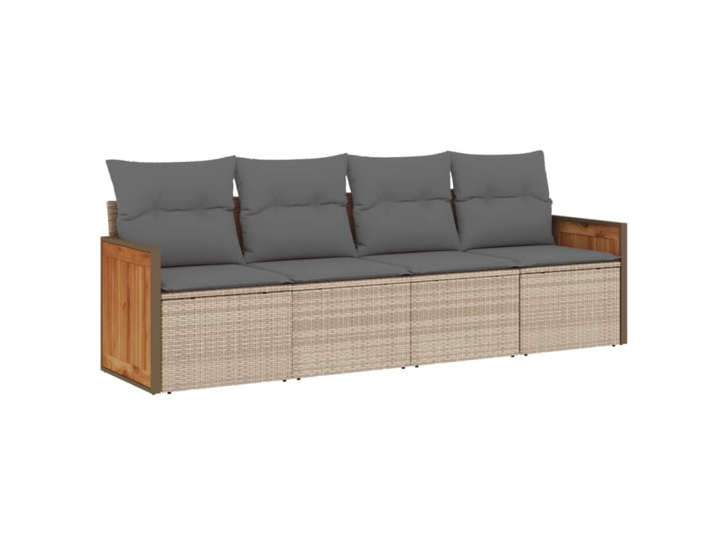 - Materiál: PE ratan, práškově lakovaná ocel, masivní akáciové dřevo s olejovou povrchovou úpravou