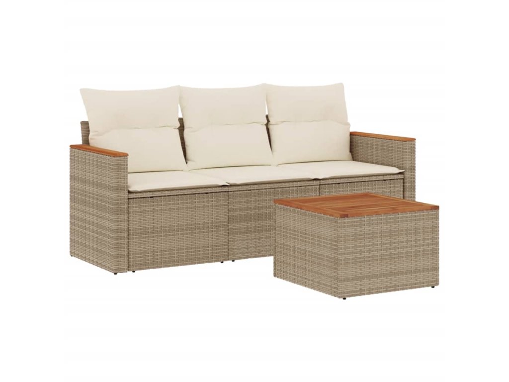 - Materiál: PE ratan, práškově lakovaná ocel, masivní akáciové dřevo s olejovou povrchovou úpravou
