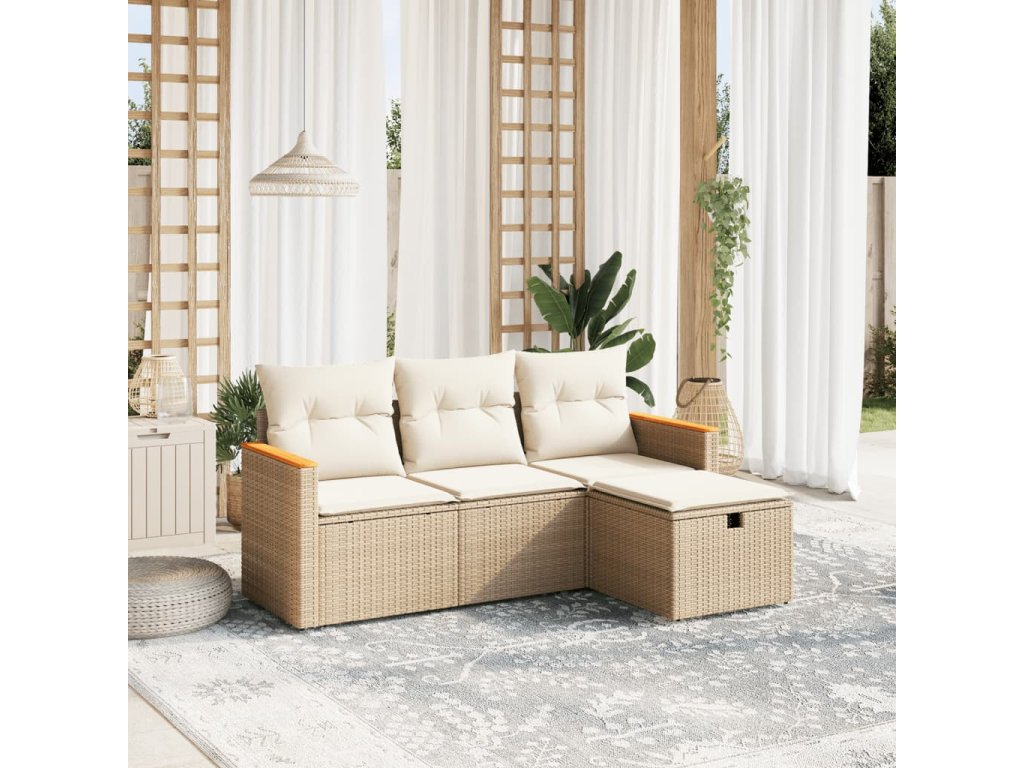 - Pohodlné sezení: Tento venkovní nábytek se silně polstrovanými poduškami a polštáři nabízí pohodlné sezení.