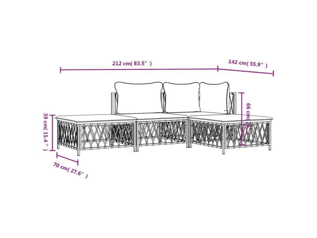 - Robustní rám: Jelikož má práškově lakovaný ocelový rám, je tato sedací souprava robustní a stabilní pro každodenní venkovní použití.