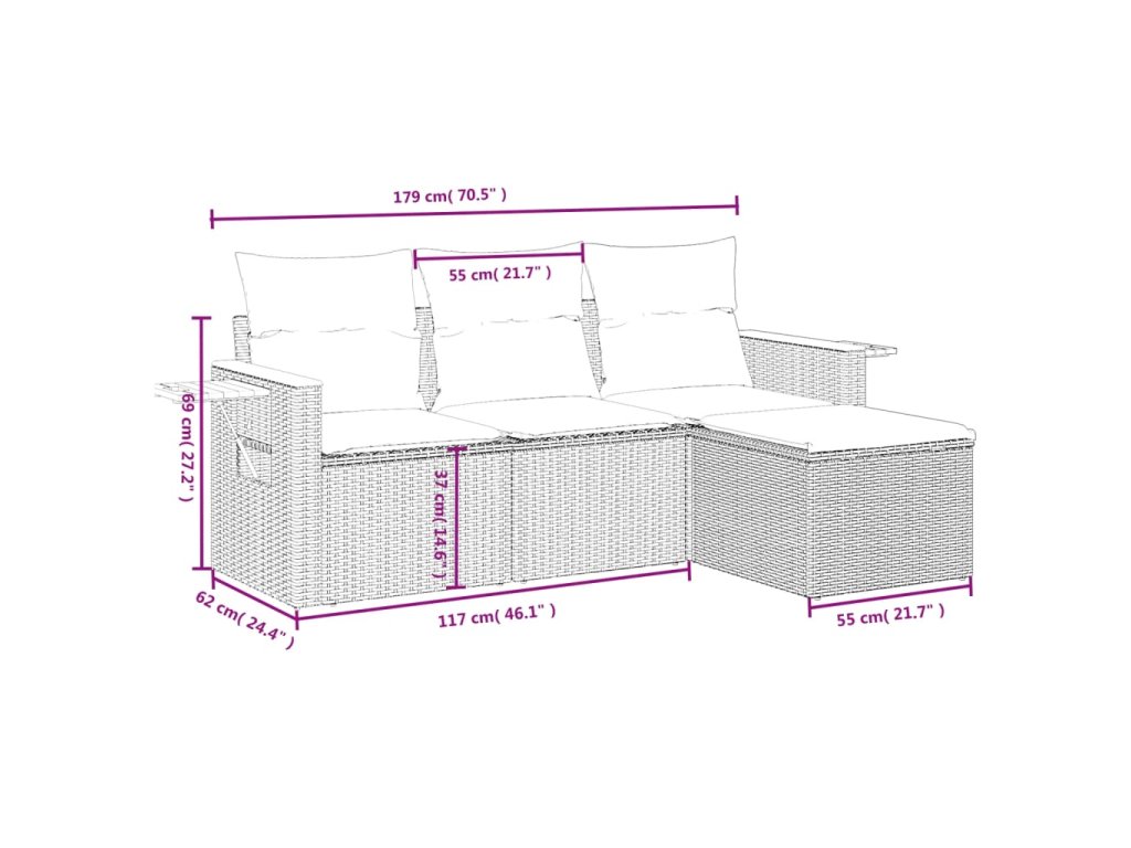 Tato zahradní sedací souprava je dokonalým doplňkem vaší zahrady, terasy nebo dvorku a poskytne vám pohodlné a příjemné místo, kde si můžete povídat s rodinou a přáteli nebo jen tak odpočívat a užívat si pobyt venku.