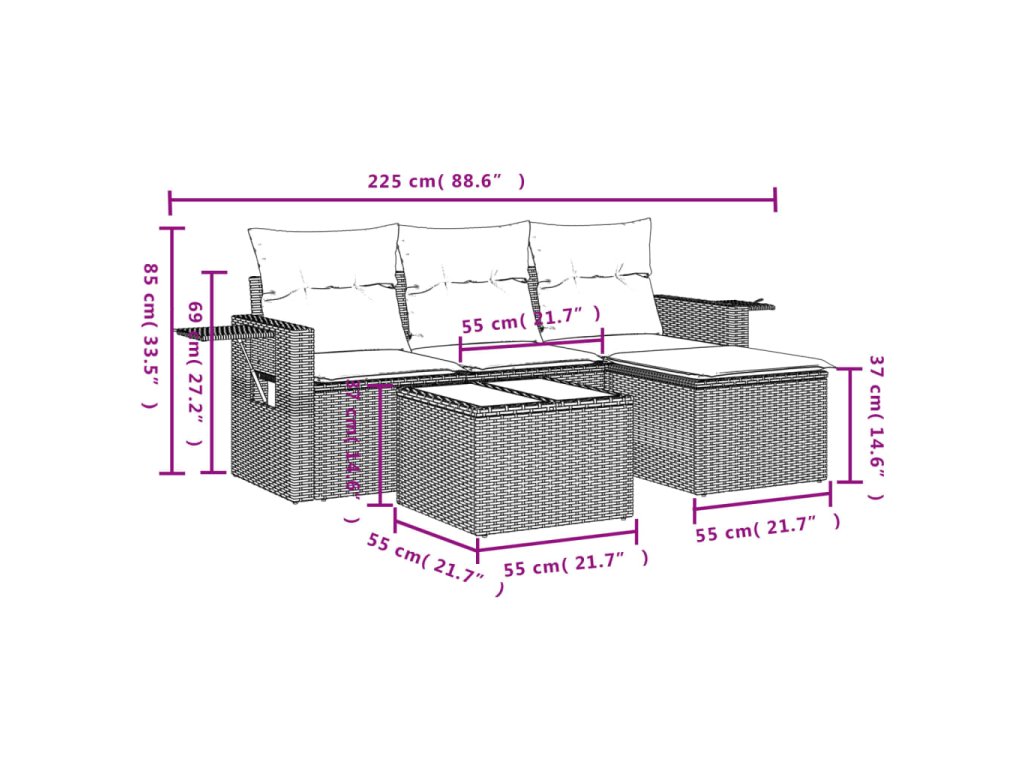 Tato zahradní sedací souprava je dokonalým doplňkem vaší zahrady, terasy nebo dvorku a poskytne vám pohodlné a příjemné místo, kde si můžete povídat s rodinou a přáteli nebo jen tak odpočívat a užívat si pobyt venku.