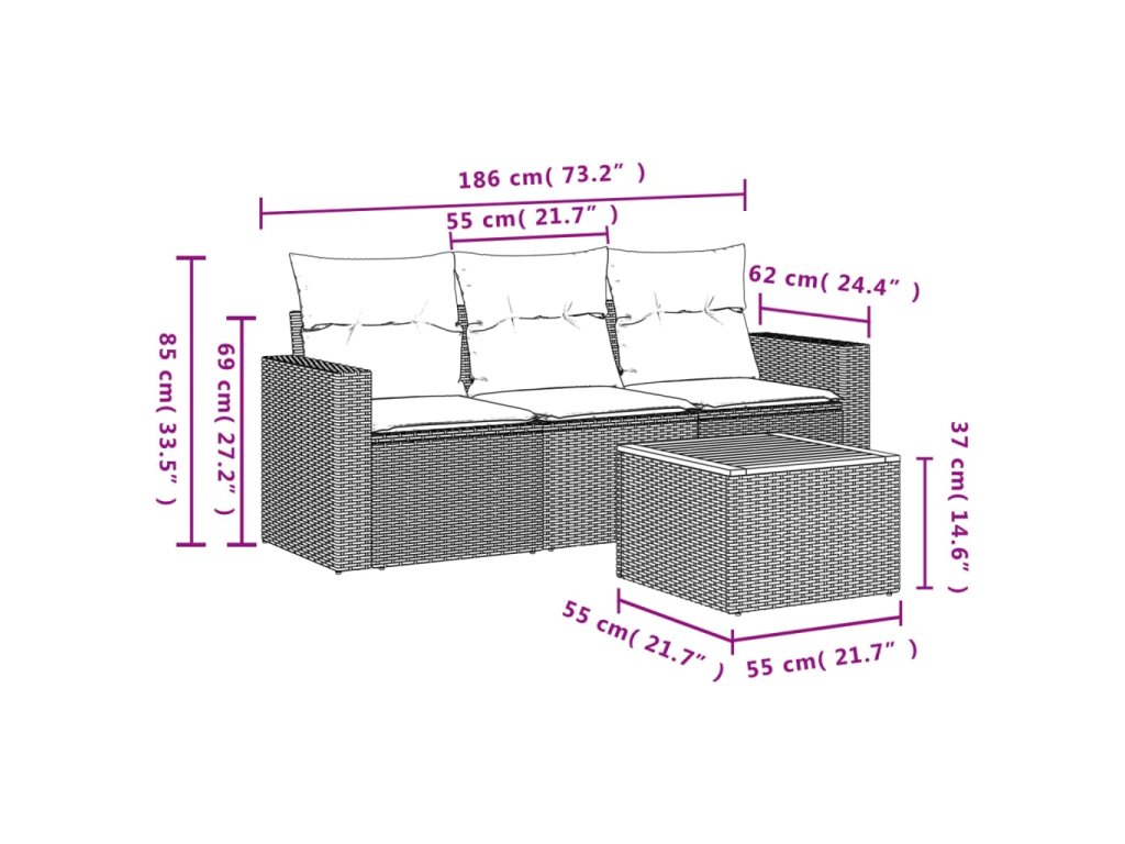 Tato zahradní sedací souprava je dokonalým doplňkem vaší zahrady, terasy nebo dvorku a poskytne vám pohodlné a příjemné místo, kde si můžete povídat s rodinou a přáteli nebo jen tak odpočívat a užívat si pobyt venku.