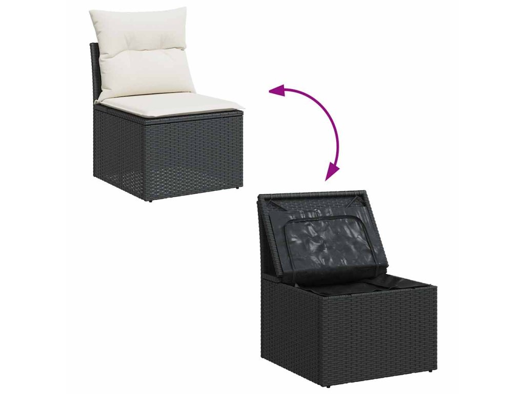 - Úložný prostor s voděodolným vakem: Zahradní nábytek má úložný prostor pod sedákem, který je opatřen voděodolnou vložkou a poslouží vám k ukládání podušek, hraček a dalších věcí. Vnitřní vak lze bezpečně připevnit k venkovnímu nábytku pomocí suchého zipu, což zaručí větší stabilitu.