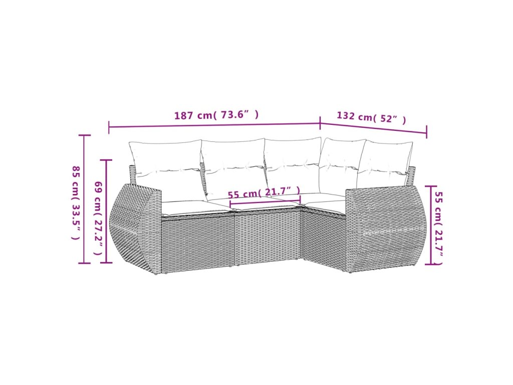 Tato zahradní sedací souprava je dokonalým doplňkem vaší zahrady, terasy nebo dvorku a poskytne vám pohodlné a příjemné místo, kde si můžete povídat s rodinou a přáteli nebo jen tak odpočívat a užívat si pobyt venku.