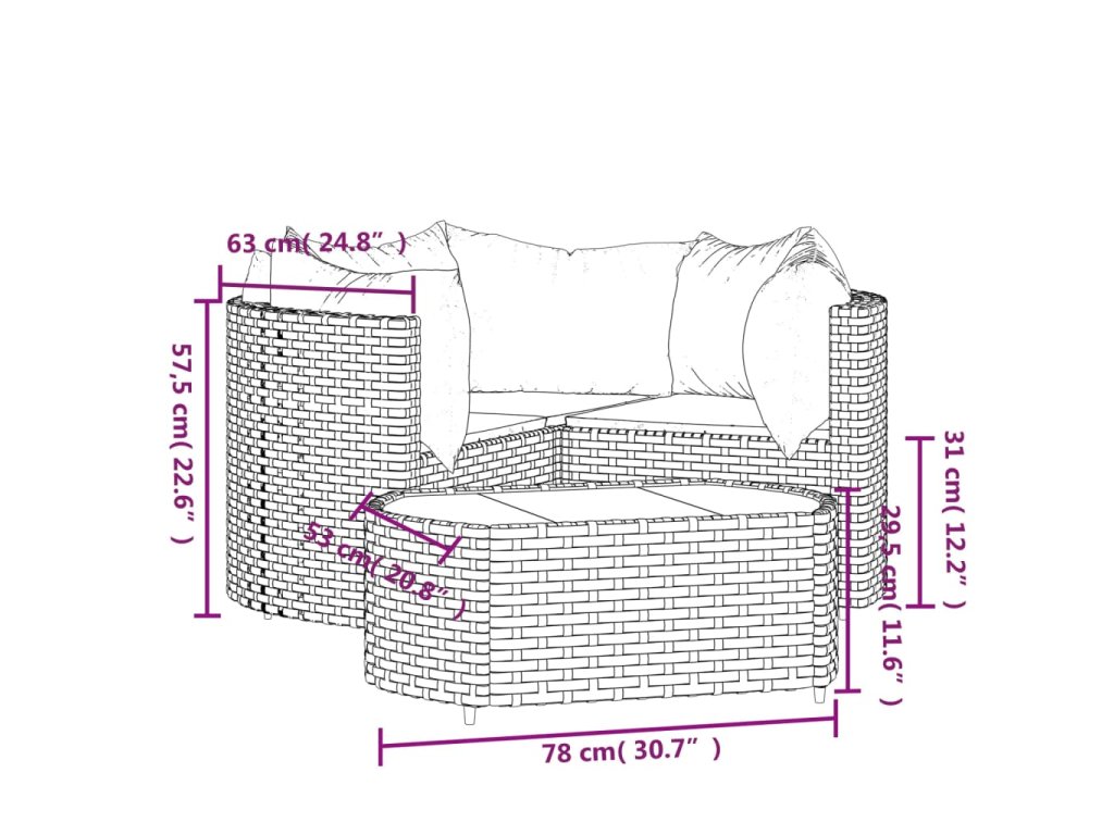 - Rozměry (každá): 63 x 63 x 57,5 cm (Š x H x V)