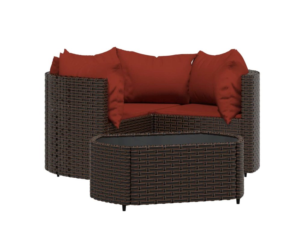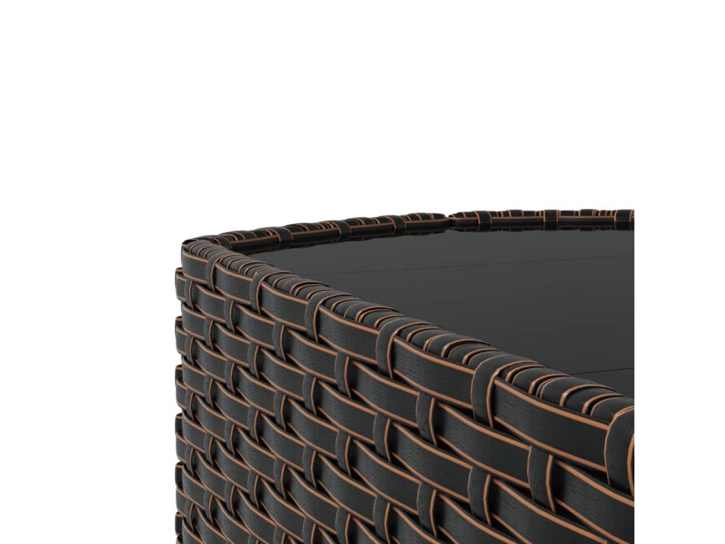 - Materiál: PE ratan, práškově lakovaná ocel, tkanina (100% polyester), tvrzené sklo