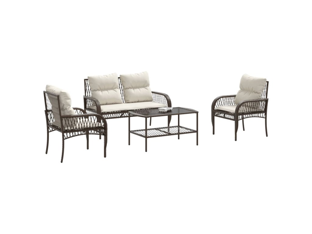 Tato zahradní sedací souprava je dokonalým doplňkem vaší zahrady, terasy nebo dvorku a poskytne vám pohodlné a příjemné místo, kde si můžete povídat s rodinou a přáteli nebo jen tak odpočívat a užívat si pobyt venku.