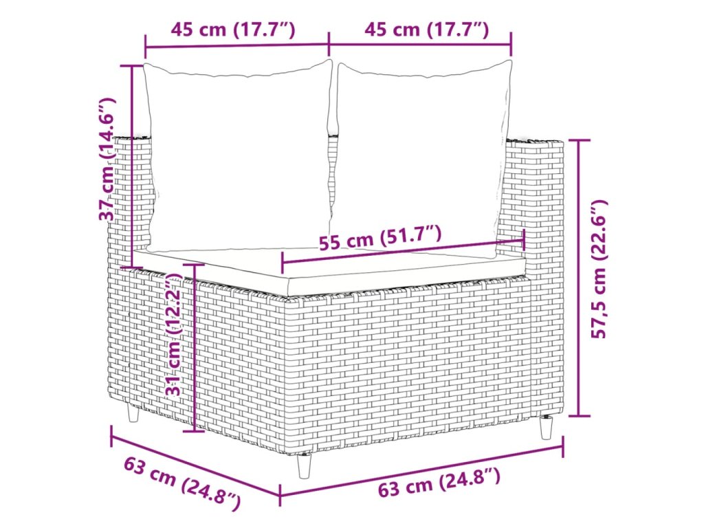 - Rozměry podušky na opěradlo (S): 45 x 37 cm (Š x H)
