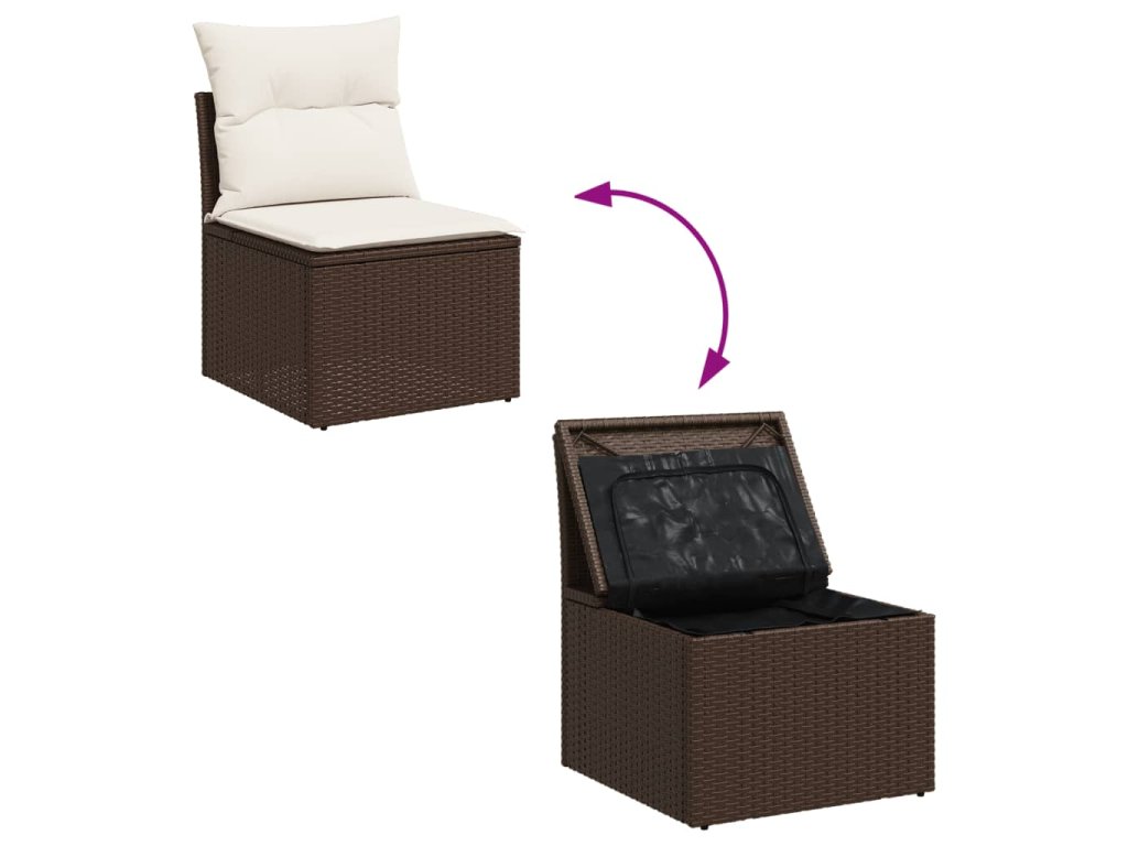 - Úložný prostor s voděodolným vakem: Zahradní nábytek má úložný prostor pod sedákem, který je opatřen voděodolnou vložkou a poslouží vám k ukládání podušek, hraček a dalších věcí. Vnitřní vak lze bezpečně připevnit k venkovnímu nábytku pomocí suchého zipu, což zaručí větší stabilitu.