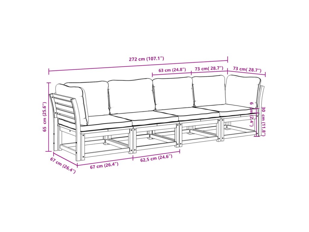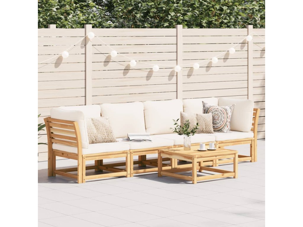 Tato dřevěná zahradní sedací souprava s poduškami má elegantní design a je skvělou volbou pro odpočinek a zábavu na zahradě nebo terase.